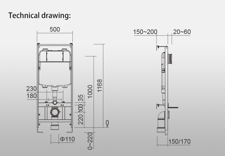 Duvara monte klozetler için evrensel çerçeve