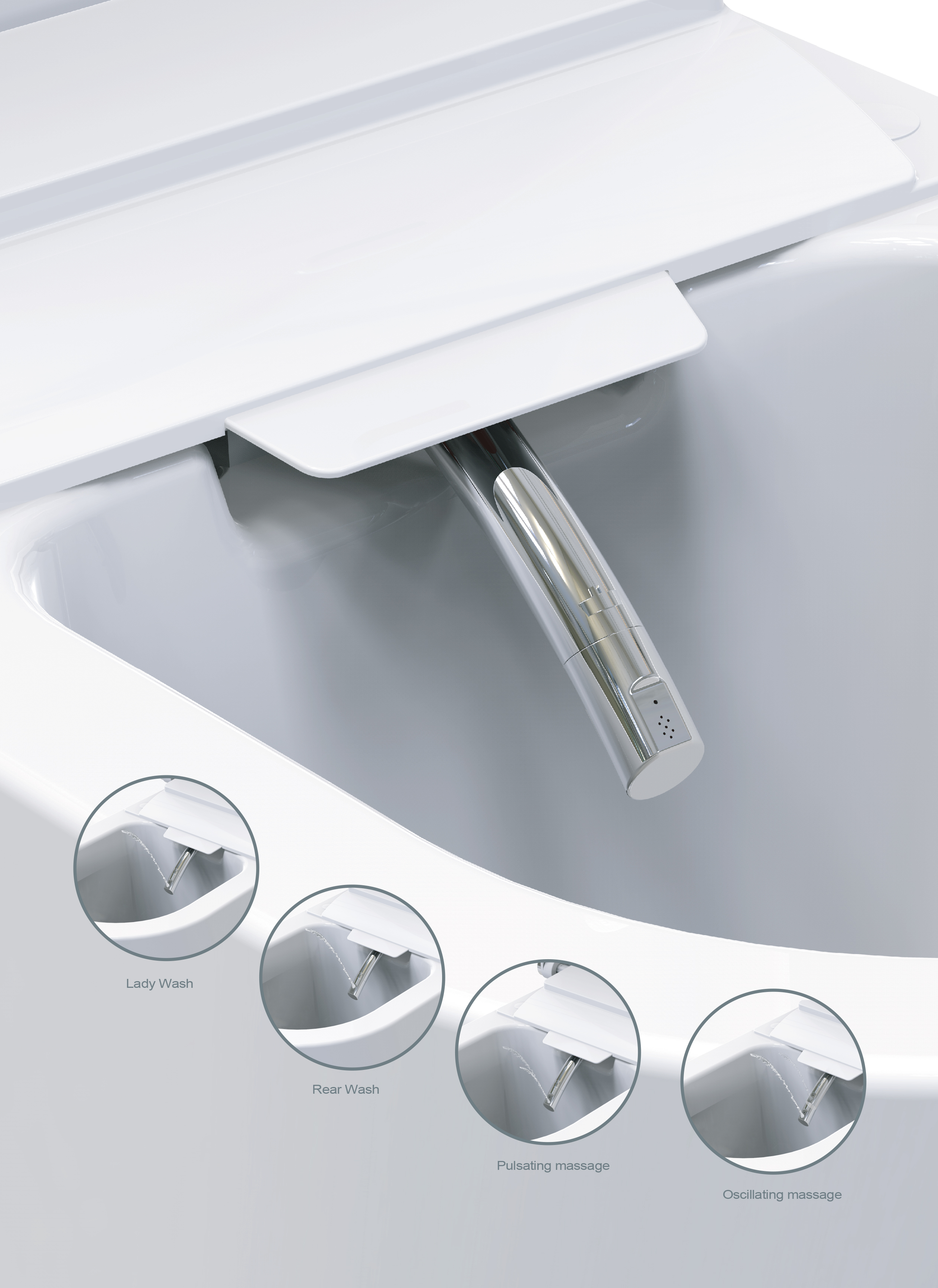 Oceanwell'in E401 akıllı klozeti, tüm elektronik aksamı doğrudan klozetin içine entegre ederek hantal dış ünitelerin ihtiyacını ortadan kaldırıyor. Geleneksel soğuk porselen klozet kapaklarına veda edin ve kompakt, hijyenik konfora merhaba deyin – üstelik banyo alanından %30'a kadar tasarruf edin. Modern banyo hijyeninin ve konforunun tadını çıkarın.