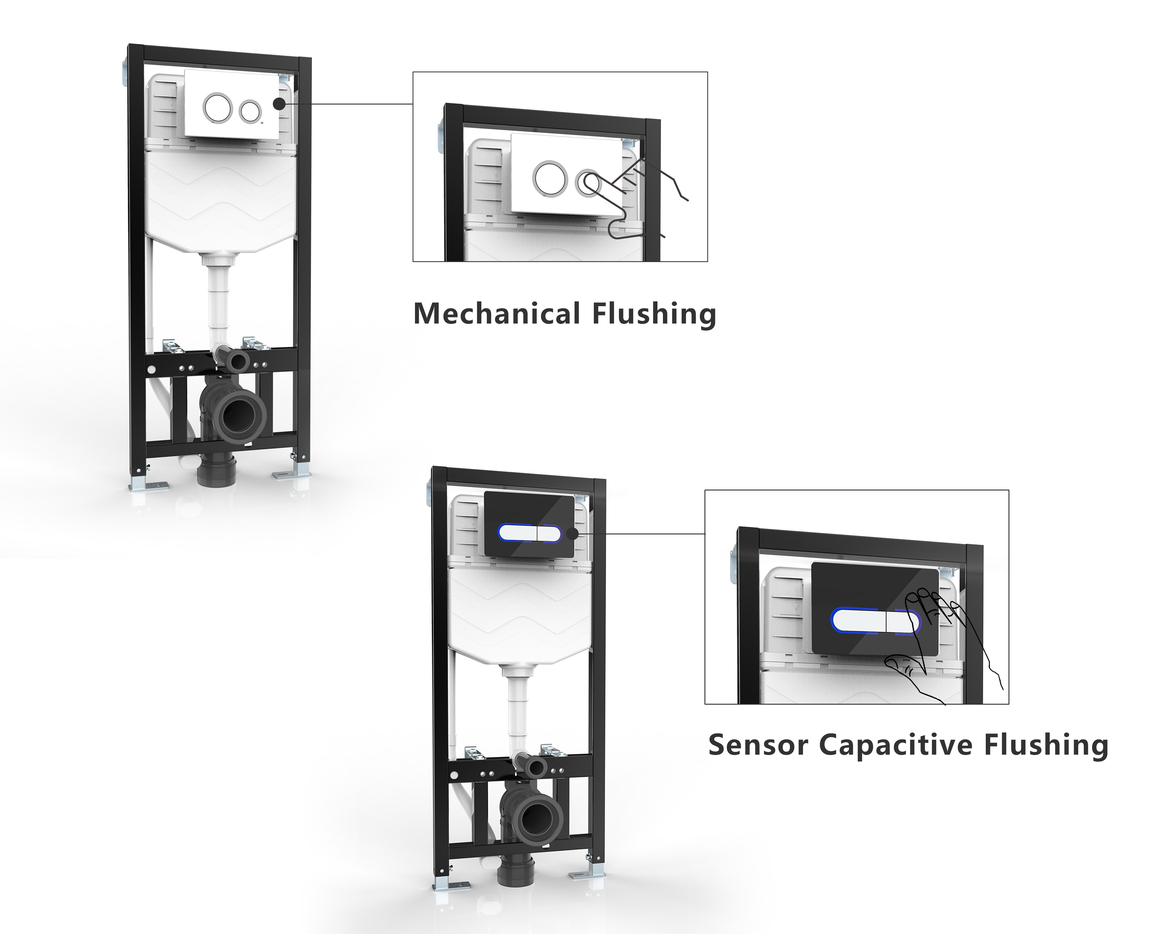 Gizli rezervuar, yerden tasarruf sağlayan şıklığı ve kusursuz entegrasyonuyla modern banyo tasarımında devrim yaratıyor. Dayanıklılık için enjeksiyon kalıplı PP tank ile tasarlanan bu rezervuar, çeşitli ihtiyaçlara uygun olarak çift kademeli yıkama (mekanik/sensörlü) ve ayarlanabilir su akışı (1,6 L/S~2,2 L/S) seçenekleri sunar. Akıllı tasarımı, duş ve tuvalet bağlantısı için ayrılmış girişler ve sorunsuz bakım için kolay erişilebilir vanalar içerir; bu da hem işlevselliği hem de geleceğe yönelik uyarlanabilirliği garanti eder ve her türlü banyo tadilatı için uygundur.