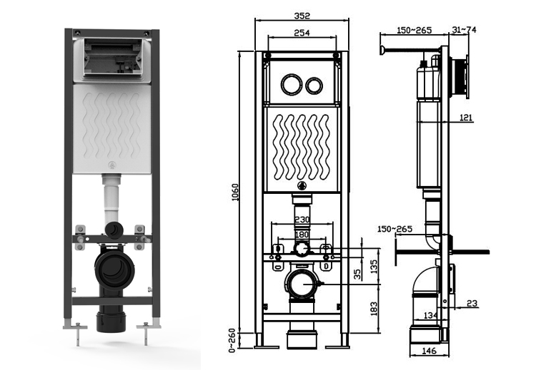 CJ726 gizli rezervuar, optimum alan verimliliği ve çok yönlü performans için tasarlanmış, önden kumandalı bir çözümdür. 120 mm kalınlık, 1100 mm yükseklik ve 350 mm genişlik gibi kompakt boyutlarıyla modern banyo düzenlerine kusursuz bir şekilde uyum sağlar, işlevselliği korurken değerli alan tasarrufu sağlar.